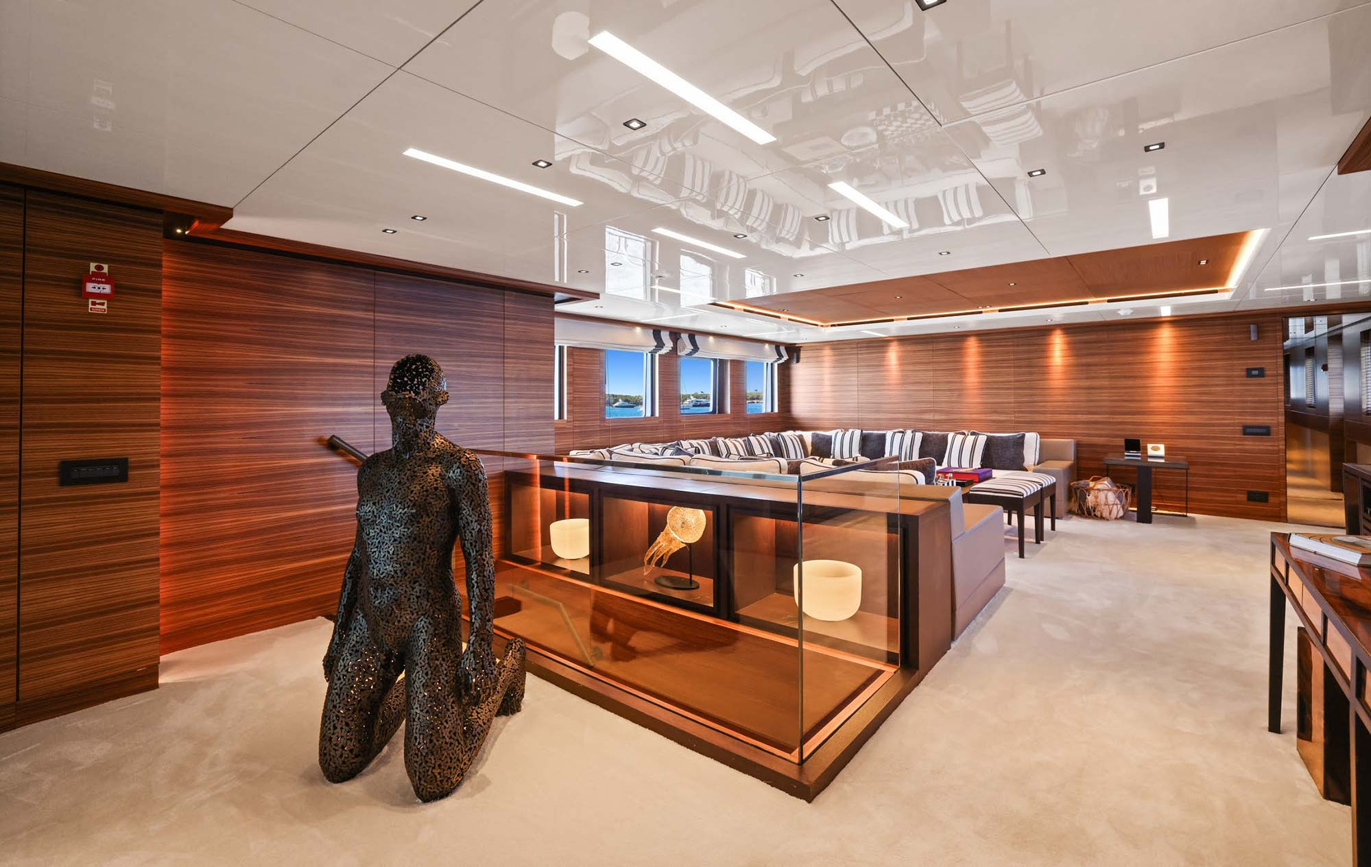 Garage area was fully painted and a new beach area was constructed. Bow thruster compartment was also painted. Tenders serviced along with jetskis and toys. Cabins area was upgraded with new multimedia system and new fabrics and pillows.