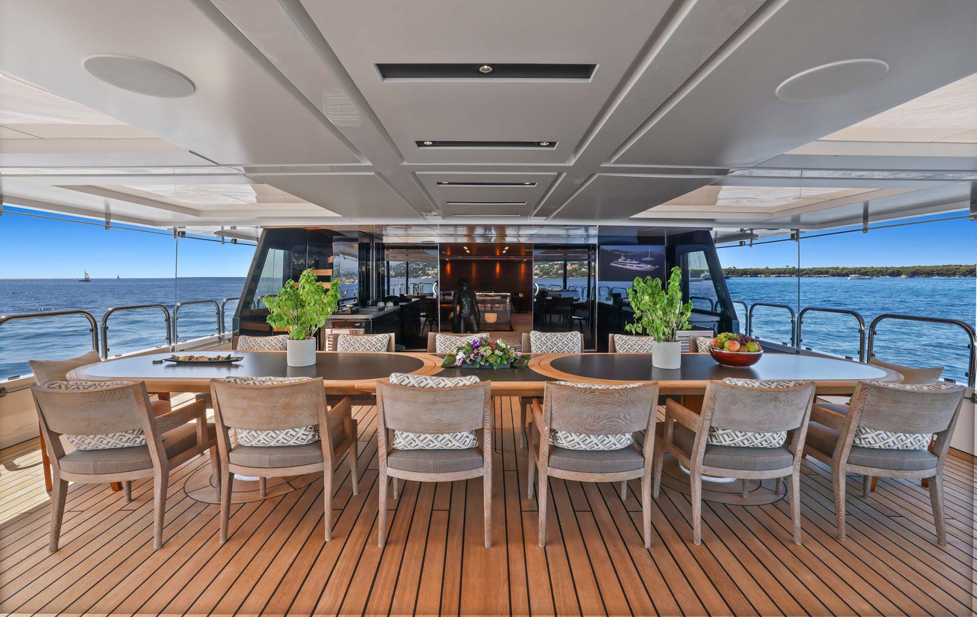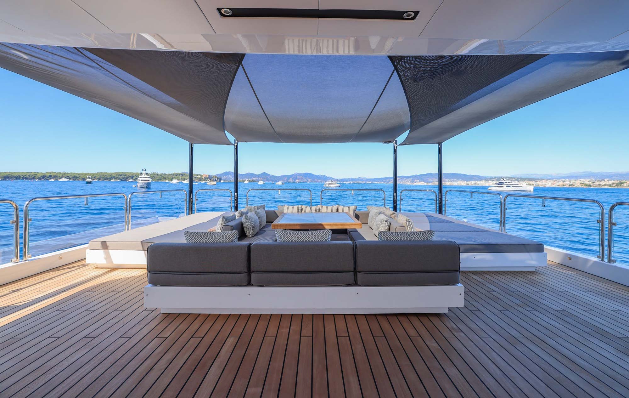 Awning’s system pillars were replaced and new sunshades were installed. Sofas in the aft lounge area were replaced along with the fabrics of the loose furniture. Jacuzzi had its annual service.Upper DeckNew Furuno Marine Monitors were installed in the wheelhouse. Loose furniture fabrics’ replaced.