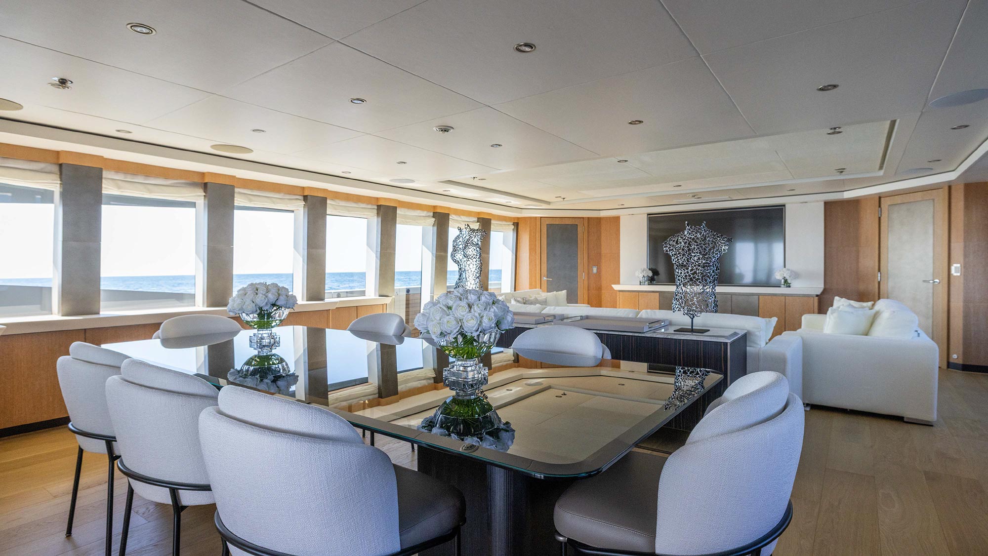 A 45.72m motor yacht built by Palmer Johnson combining sleek, sporty design with luxury performance. In 2025, she underwent a multi-million refit at Palumbo Shipyard, covering a full interior, exterior and engineering renovation, including new stabilizers, AV system, full paint job, and a certified hull renovation scheme. Originally delivered in 2009 and first refitted in 2012, she is powered by twin MTU diesel engines, and reaches a top speed of 26.5 knots and cruises at 20 knots. She accommodates 10 guests in 5 cabins and carries 8 crew.