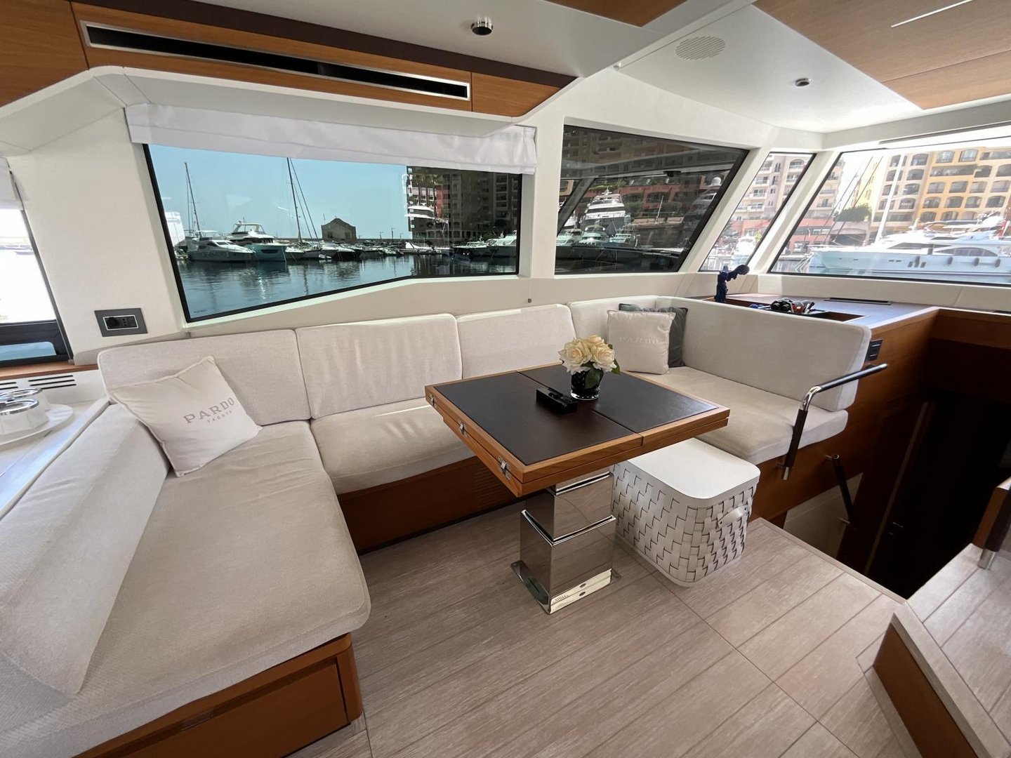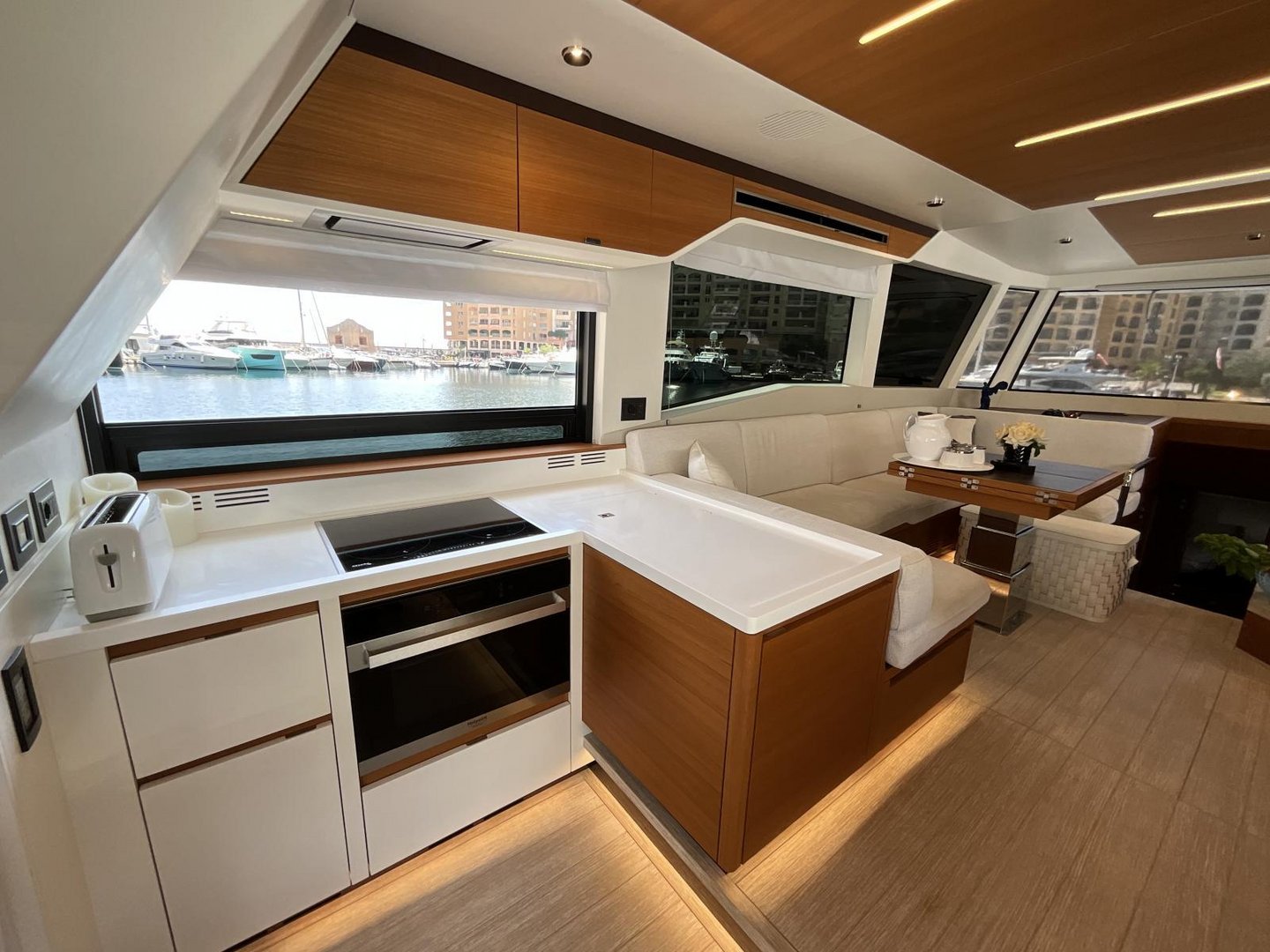 L shaped sofa to port side