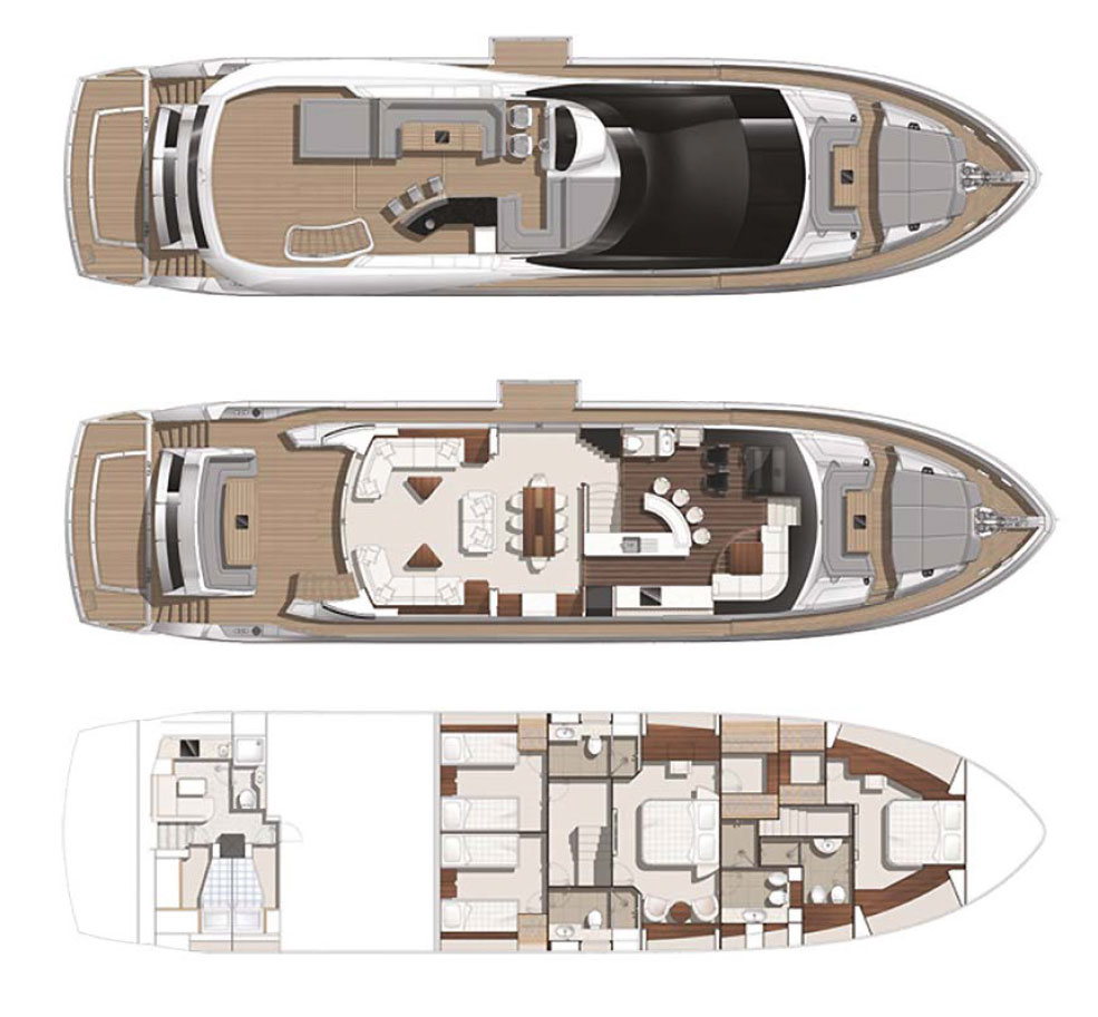 She features four large en-suite cabins consisting of a Master, VIP and two twins on the lower deck. The twin cabins can both easily be converted to doubles, allowing the layout to be tailored to different guest requirements. All the cabins are outfitted with modern AV entertainment systems including a Samsung TVs, Sonos speakers, Blu-ray player and Apple TV.